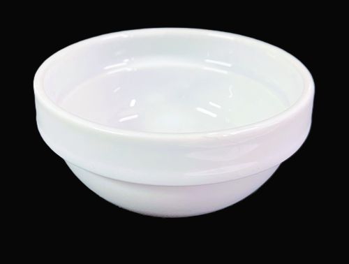Description: This 3.5-inch white bowl features a simple and versatile design, ideal for serving sauces, condiments, or small portions. Perfect for restaurants, catering, and casual dining presentations.