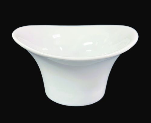 Description: This 4x4-inch white bowl features a modern flared design, perfect for serving appetizers, soups, or side dishes in restaurants, catering events, or casual dining settings.