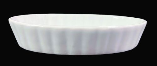 Description: This 5.5-inch white oval dish features a smooth, fluted design, perfect for serving appetizers, side dishes, or desserts. Ideal for restaurants, catering, and home dining presentations.