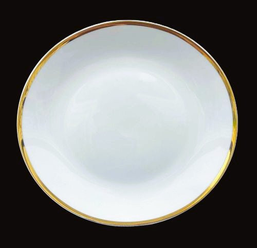 Classic and sophisticated, this 6" coupe plate with gold rim is perfect for bread, butter, or small desserts. Its clean white body and delicate gold accent make it ideal for upscale dining and formal events.