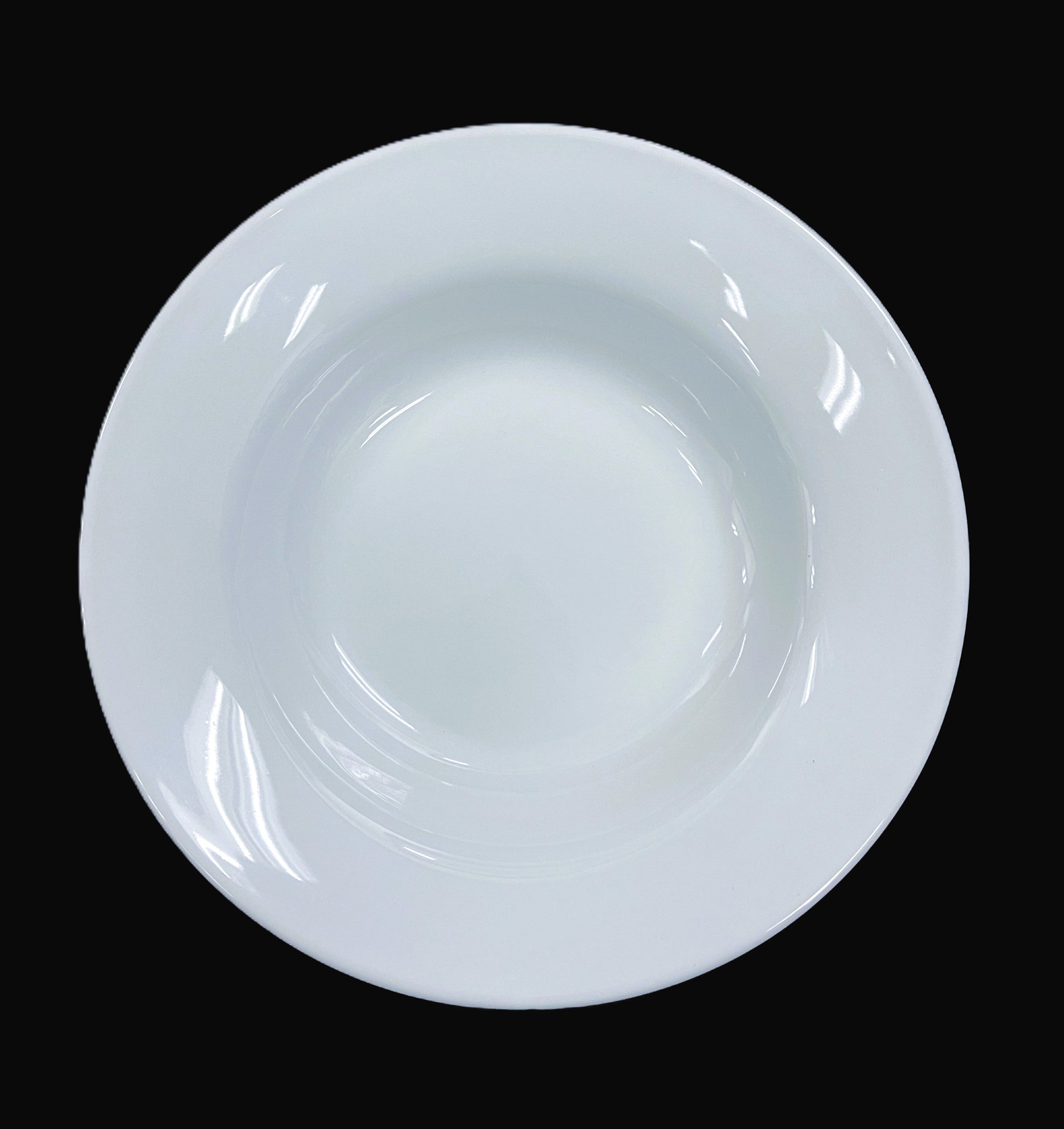Description: Elegant white porcelain soup bowl featuring a wide rim and smooth finish, ideal for serving soups, pastas, and stews in both casual and fine dining settings. durable and chip-resistant for long-lasting use.